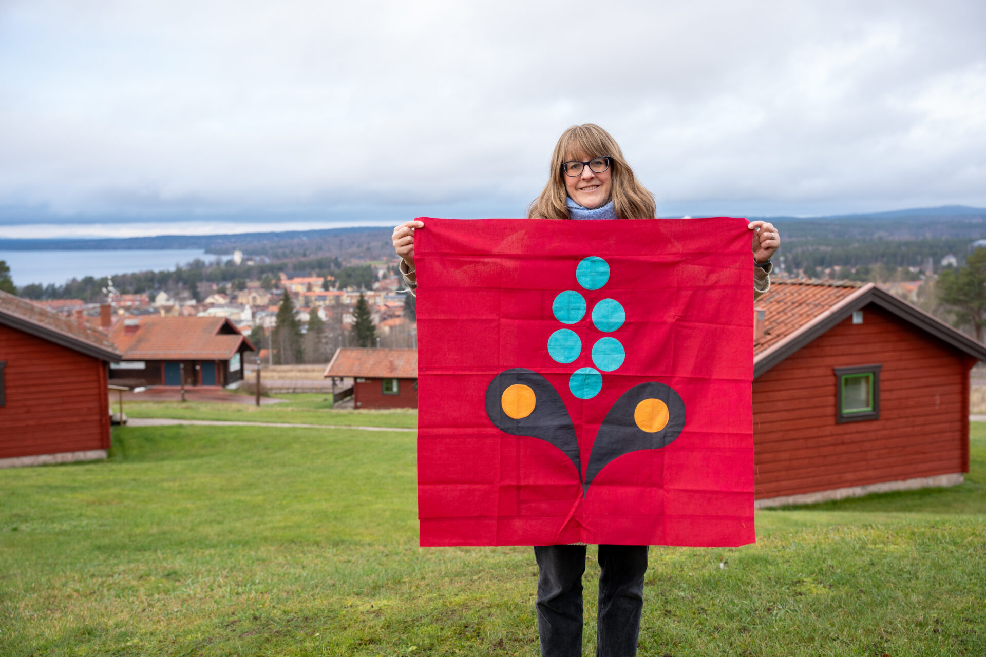 Enjoy a look at historic costumes at the Dalarnas Museum with master embroiderer Anna-Karin. Study the decorative folk painting traditionally used on the Dala horse, which inspired the Kurbits quilt design.