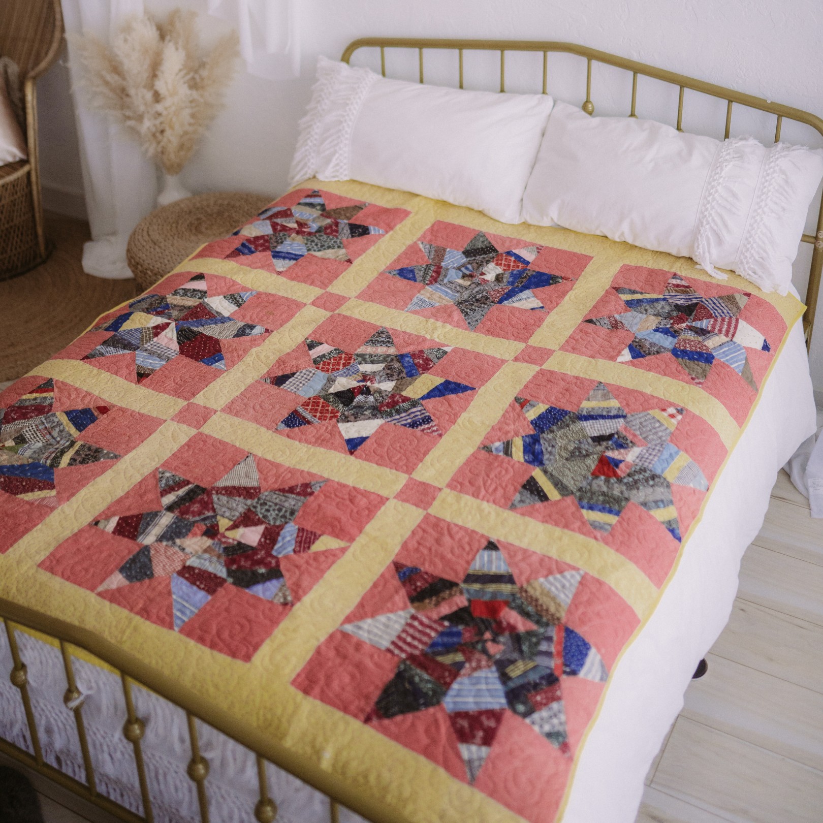 Imperfections: Every Quiltfolk Foundry quilt in our shop began its life as an unfinished vintage top or collection of loose blocks. We seek out lost tops and blocks that are in good condition, but due to the source material’s age and care history, some imperfections in the finished quilts may be present. We hope you’ll see them as we do, just another part of the story.