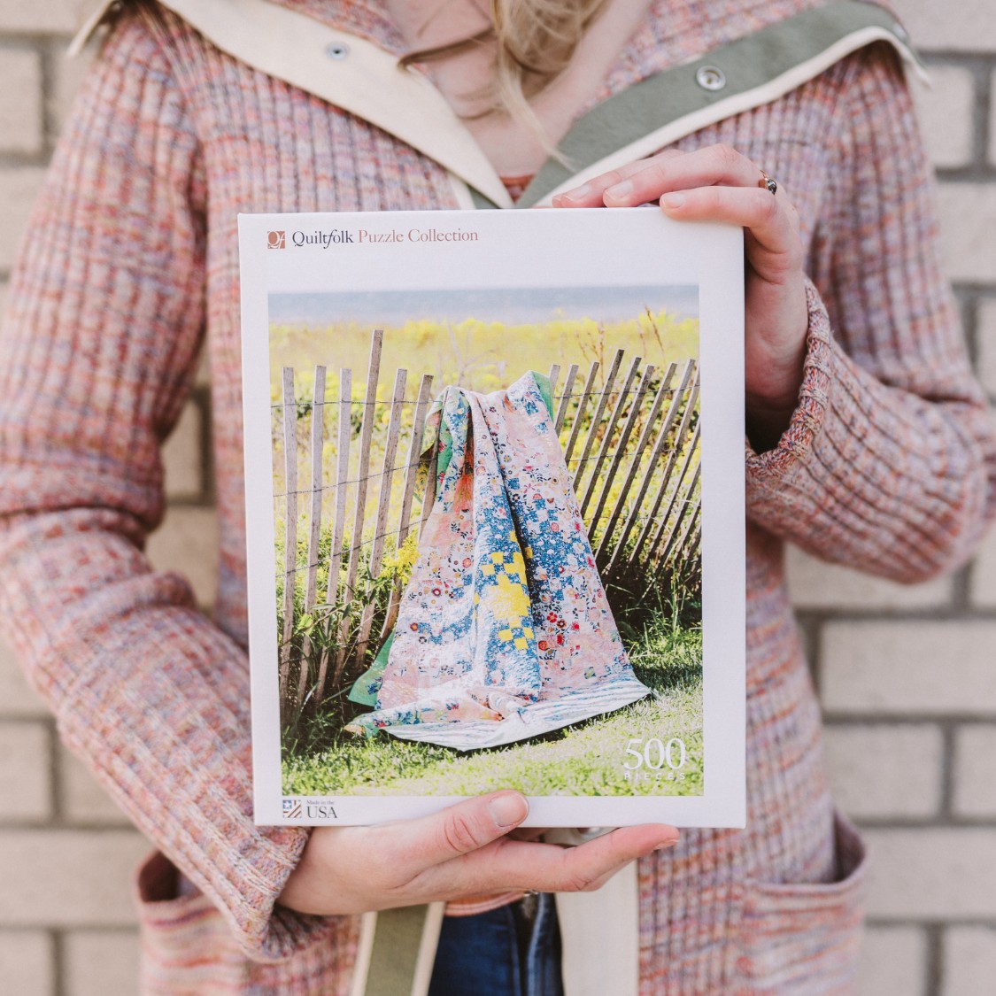 Quiltfolk puzzles are made in partnership with The New York Puzzle company. All puzzles are crafted from 100% recycled chipboard that is 20% thicker than standard puzzles. Our linen-style paper reduces glare, and each puzzle is shaken prior to shipment to reduce puzzle dust. Enjoy!