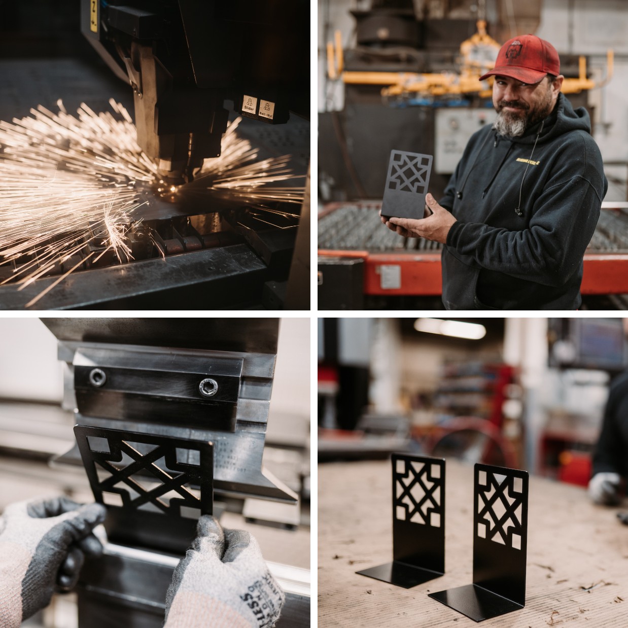 And the best part is that we worked with the skilled craftsmen at McKenna Metal, right here in Oregon, to perfect and produce the bookends that we had envisioned, made from powder-coated steel. Seeing their team in action and witnessing the craftsmanship behind every piece was an absolute joy.