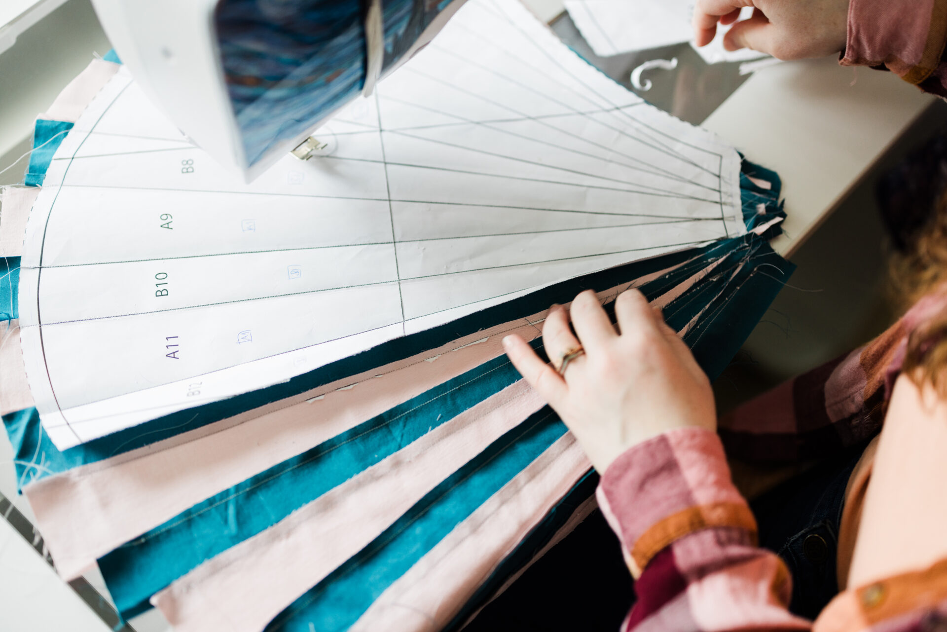 Eva Saunders learned to sew, as many of us do, at her grandma’s knee in the 1990s. A professional seamstress, her grandmother, Theresia, would keep an eye on Eva during summer breaks in her sewing room. Eva, the designer behind Gingerly Quilt Co, sewed buttons on scraps and pieced squares of fabric together, and over the years, her grandma taught her to make clothes, increasing the challenges with every passing summer.