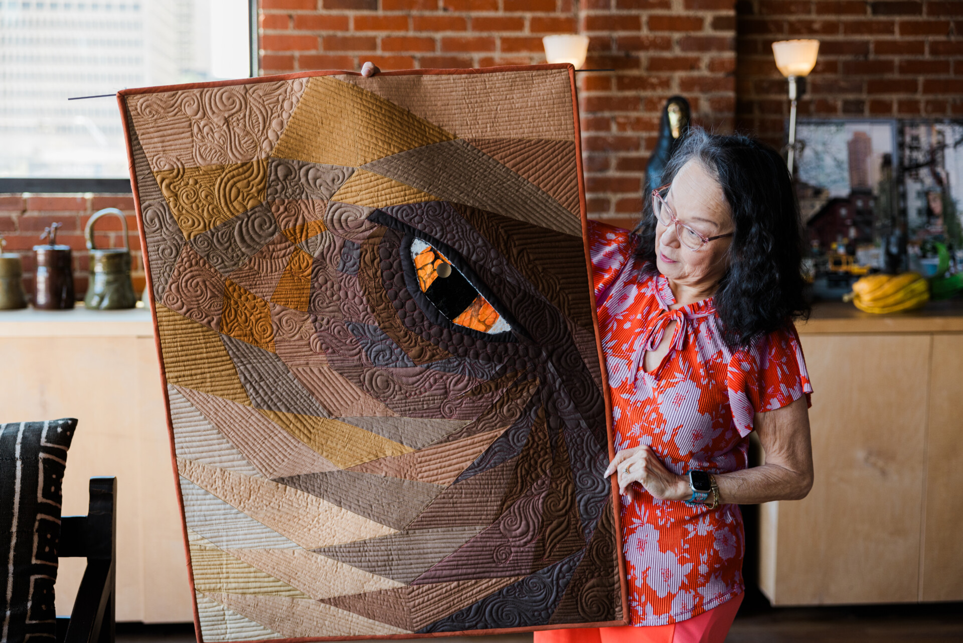“I see color, and I love color,” she said. Going forward, Ann intends to keep pushing her art and creating quilts with original designs and colors that reflect her own multi-cultural point of view.
