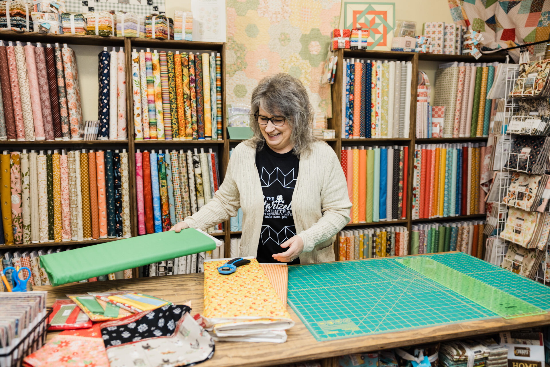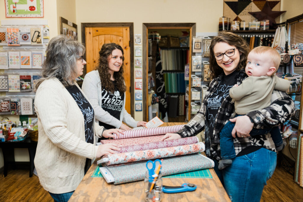 Although Sharla never imagined they would have grown so much in five years, she is open to even more evolution. A 2025 building addition will offer a larger gathering space for stitchers. Sharla also wants to grow their Etsy shop beyond fabric to include crafts, and she plans to do more designing and pattern writing, too. “I’m a huge goal setter! Each year, I set creative growth goals and try to learn new skills, so I can reach more people. I want them to know we were created to be creative and to give themselves grace to make mistakes in trying new things,” Sharla shared.