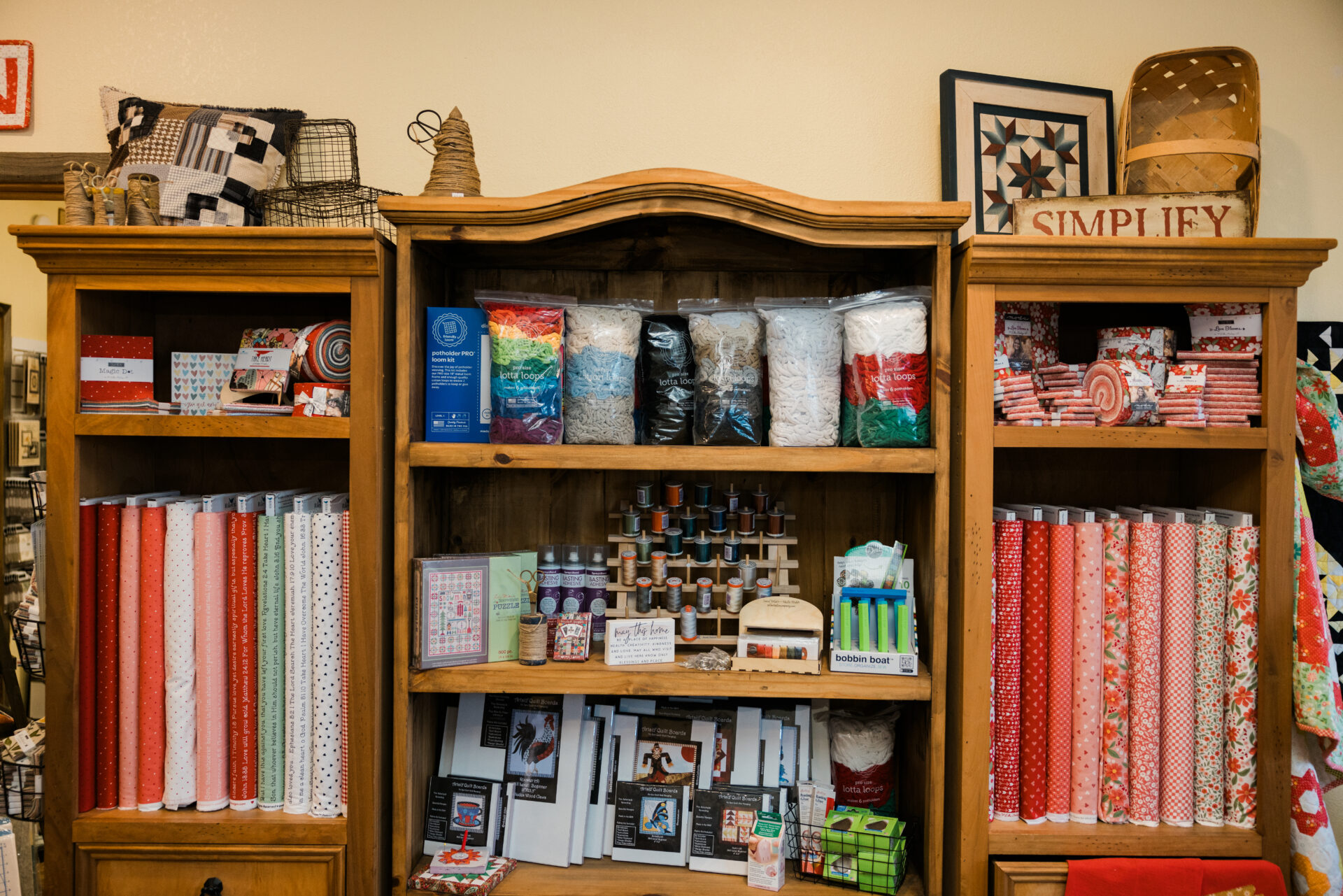 They are now a full quilt shop, carrying 1,000-plus bolts of fabric, as well as artisan goods and crafts. Not only does that make them unique, but they are also the only non-box store within an hour’s drive in any direction. Along with quilting workshops, the shop offers CrafTEA Saturdays featuring hot teas and projects, Bible journaling, and sewing classes that teach basic concepts for pillows and other items.