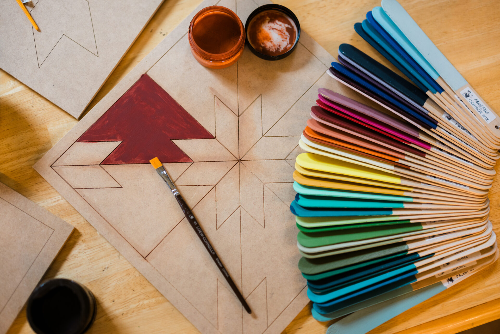 Nearing the end of her teaching career, Sharla contemplated what she might do next. The shop idea was a bold move in a new direction, but a small jump in concept. It basically put her craft fair booth in her own brick and mortar building and incorporated her love of teaching, crafting, and quilting. “I swapped lesson plans for creative workshops,” Sharla recalled.