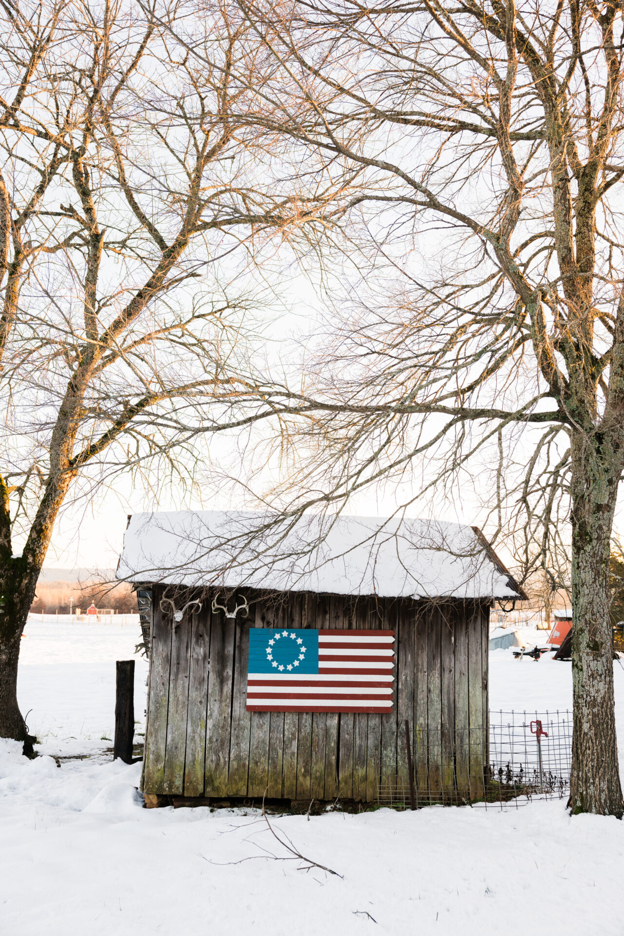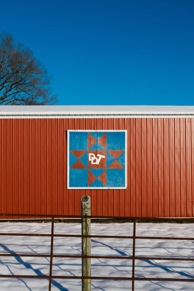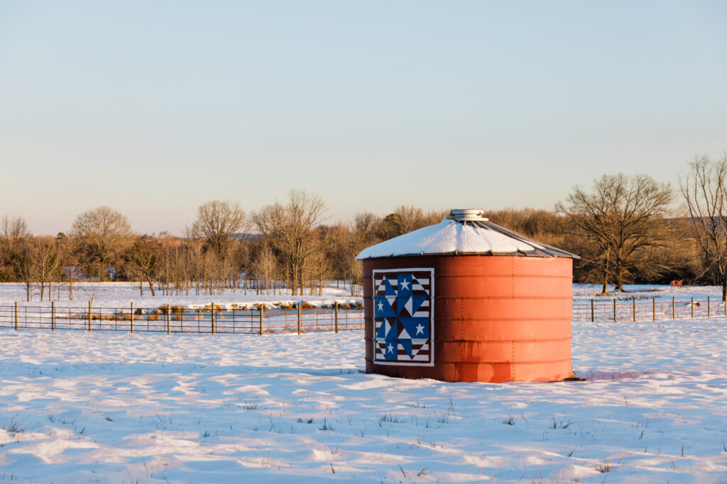 Her next barn quilt found a home on the oldest building on the property, a tack shed. Then, she turned her attention to an unexpected canvas: an old grain silo sitting in front of their house. “I tried really hard to give [the silo] away because it was ugly,” she said. “It was just an eyesore, and nobody would take it. So I told my husband, ‘Well, I guess we’re just going to have to make lemonade out of that giant lemon sitting out there.’”