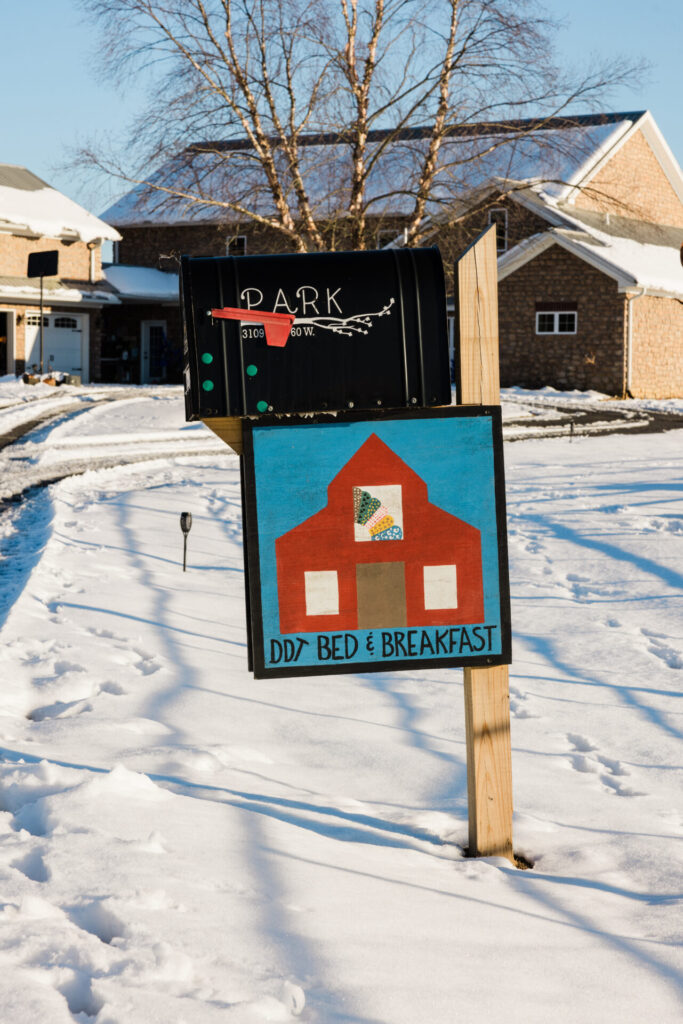 Barn quilts seven and eight went on the front of the ranch’s barn bed-and-breakfast. The final two barn quilts are a little less prominent, taking up space on the sides of the ranch’s mailbox. “One is actually of a barn that’s got a barn quilt painted onto it,” she said.