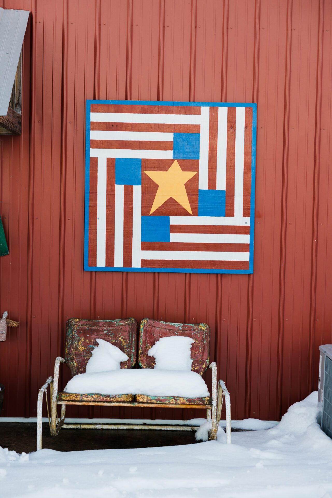 The barn proved to be a perfect canvas of sorts, where Debbie’s first barn quilt—a bold, 8-foot-by-8-foot Ohio Star pattern—would be displayed. “It was huge,” she said. “My husband had to get another man to help him as well as the use of the tractor to hang it on our hay barn.”