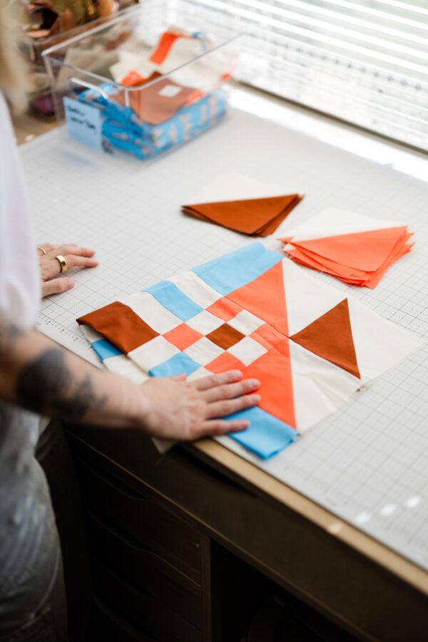 Fast-forward to 2024, and QuiltCon has exhibited Taylor’s quilts in its show every year since 2022. In 2025, she’ll teach classes on discovering one’s color palette and honing technical skills for quilt pattern design. In 2023, she was an Art Gallery Fabrics “Sewcialite” and curated a nostalgia-inspired fabric bundle for the brand. She also released her first set of acrylic templates, a collaboration with Cut Once Quilts, a laser cutting company in Austin, Texas.