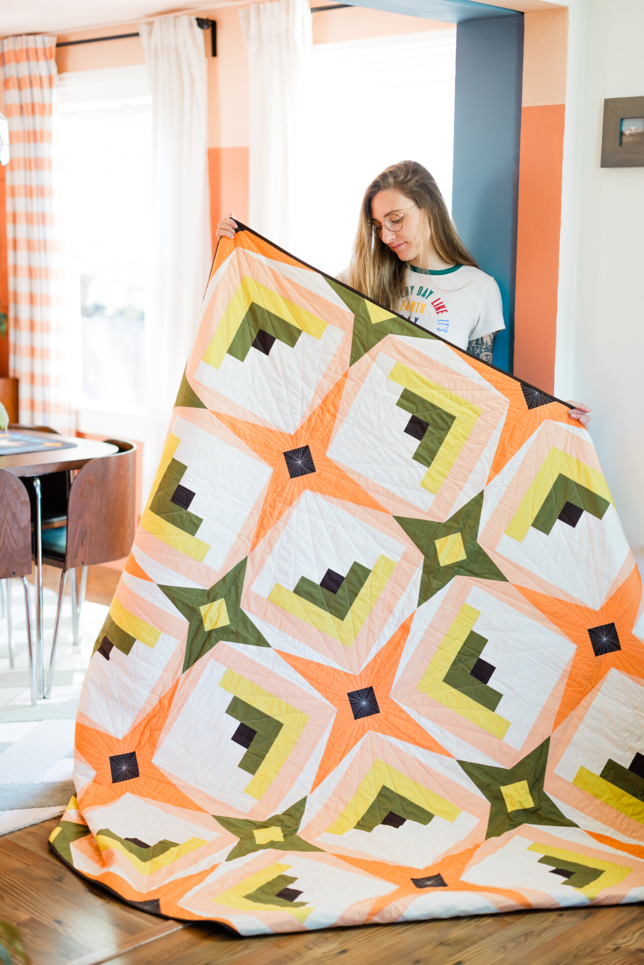 With a professional background in illustration and graphic design, Taylor’s academic grasp on color theory cemented her reputation as modern quilting’s color queen. Of course, none of this would be possible without her quilty BFFs, including Christina West (Kindred Quilt Co.), Ashleyn Downs (Urban Dwell Studio), Brooke Shankland (Eudaimonia Studio), Tara Fanning (Full Moon Fabric Co.), and Taylor Hughes (Homely Local).