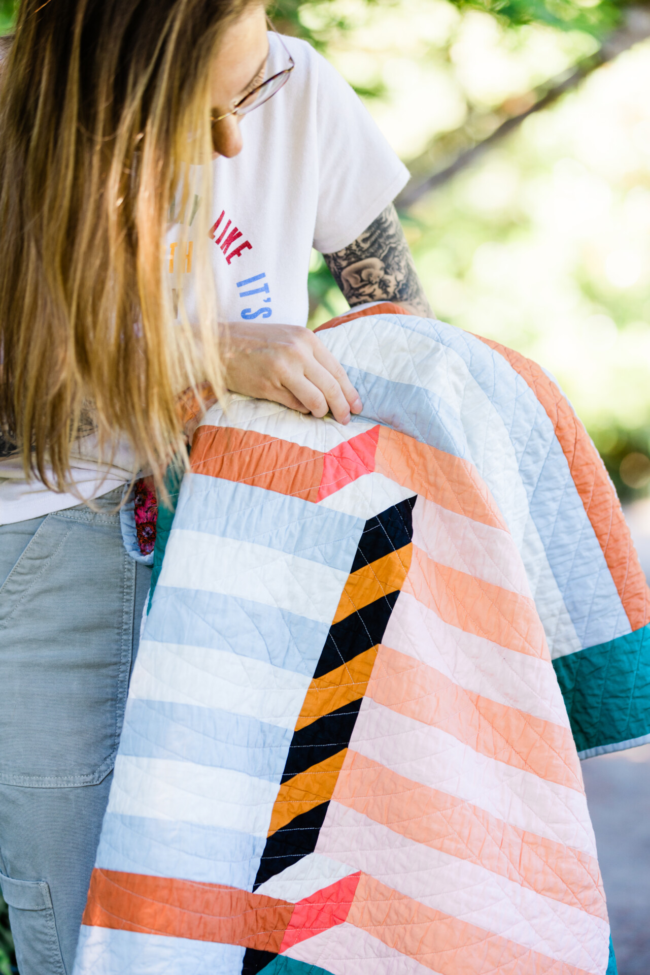 Taylor’s grandmother taught her how to sew as a child, but it wasn’t until 2019 that Taylor started quilting with gusto. Sadly, her inherited 1980s Singer machine had mechanical problems. “My machine was holding me back, and I didn’t know it at the time,” Taylor said. “The tension issues are so frustrating and heartbreaking, and you think you suck at sewing. I told myself, if I was still sewing in a year, then I’d buy myself a really nice sewing machine.”