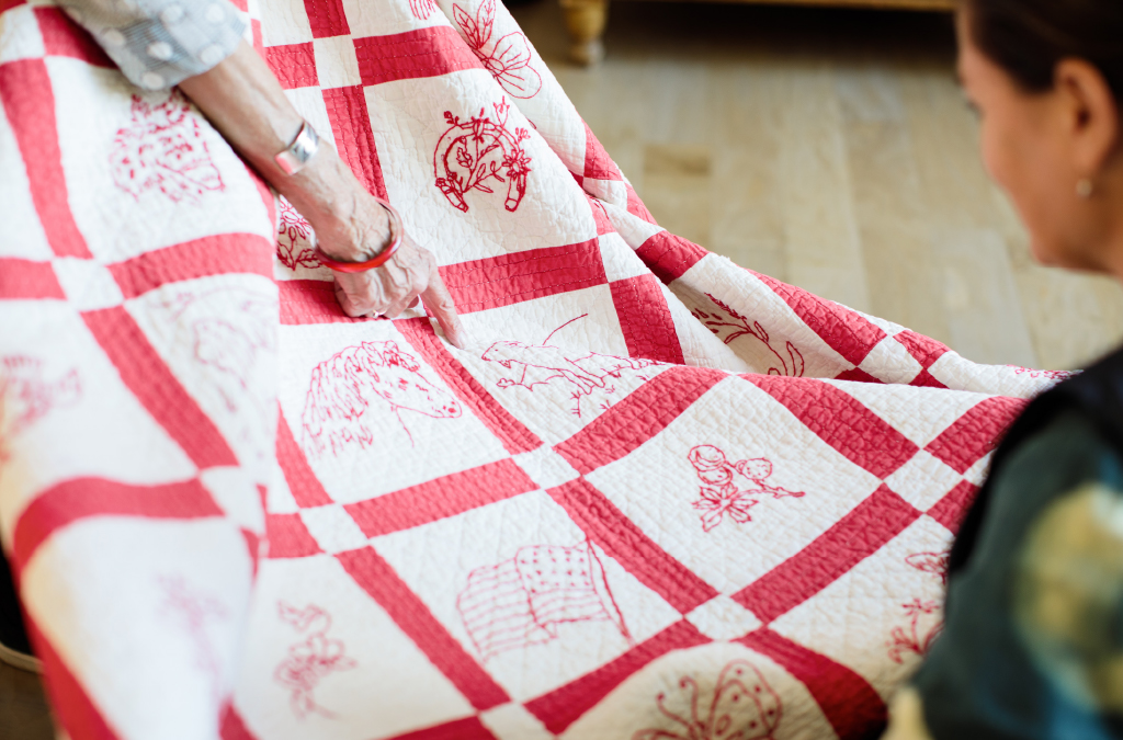 To go one step further, we coordinated in-person meetings between the quiltmakers/owners and designers to share the stories of their quilts and the inspiration behind each pattern — resulting in priceless photographs that you will surely cherish.
