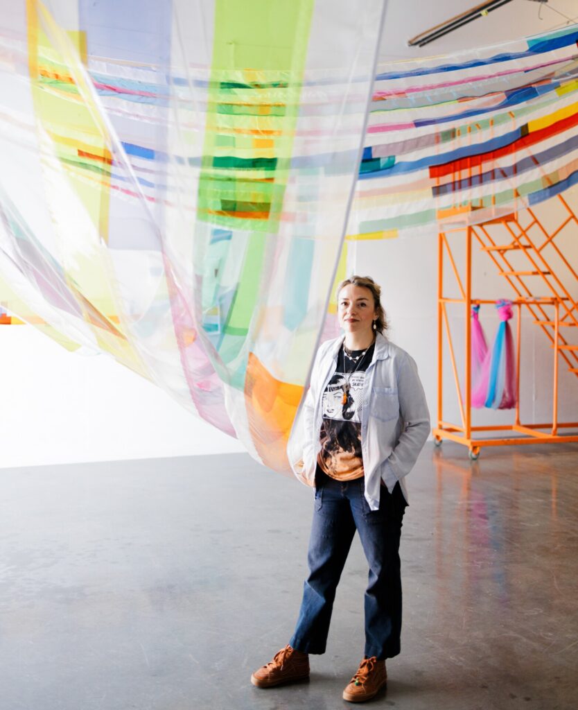Artist Rachel B. Hayes has been commissioned to make sculptural textile installations by many types of organizations. She has created works for Missoni, the Italian fashion firm, and has a permanent installation inside the headquarters of Facebook. Her work is in museums too. But she was extra excited when the International Quilt Museum (IQM) commissioned a work in 2022.