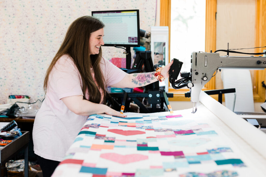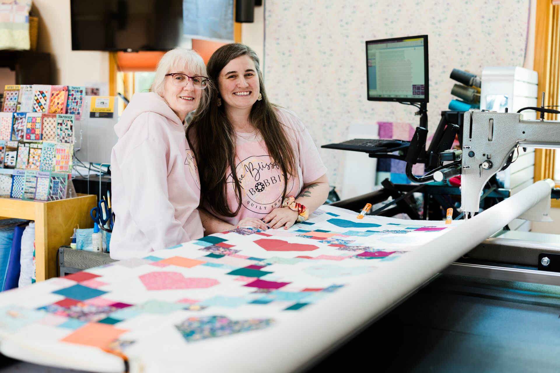 Stephanie eagerly hosts “open sew” days, welcoming both experienced and novice quilters. She dreams of future outdoor quilting events in her garden and expanding her free-motion longarm skills as The Blissful Bobbin grows. Most importantly, she looks forward to being able to fully employ her mother, who has spent years as a dedicated caregiver for her father. “I’m really still figuring things out,” she said, while reflecting on her first year of business, “but I’m proud of what we’ve done so far.”
