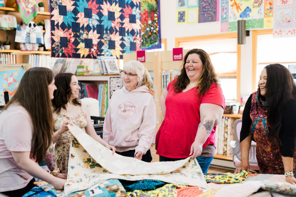Stephanie hopes people see The Blissful Bobbin as more than just a home for fabric, notions, and supplies. She wants it to be a point of connection. In a region dotted with remote villages and transient military families, Stephanie sees quilting as a way to bridge gaps and build relationships. She hopes to continue creating spaces where younger quilters and Native artists can share and celebrate their cultures through quiltmaking. “I feel like we’re becoming a stepping stone for the next generation of quilters,” she said.