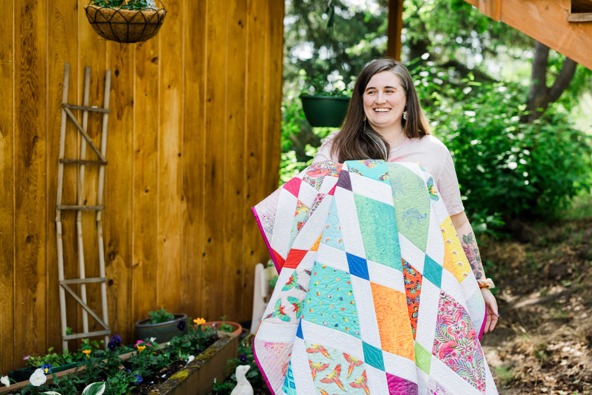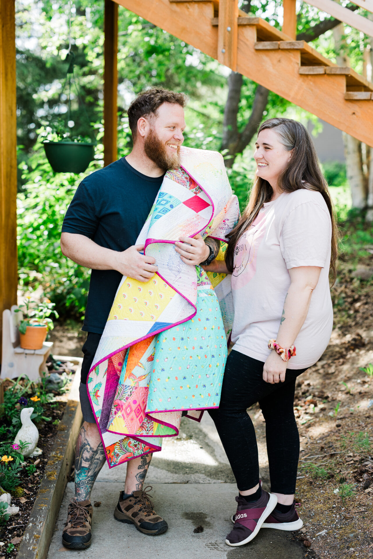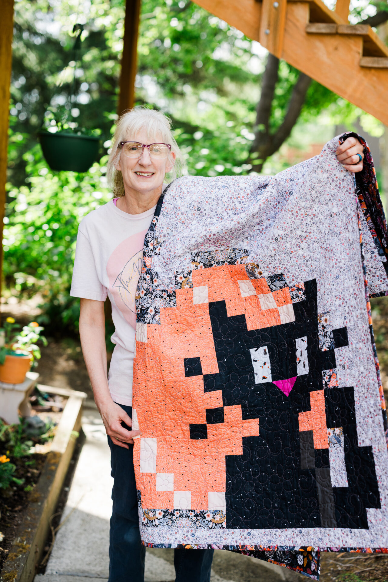 After her husband Alan Conner’s military career brought them from El Paso, Texas, back home to Fairbanks in 2020, Stephanie quickly embedded herself into the local quilting community, working at Northern Threads, the city’s beloved quilt shop. It was there that she honed her longarming skills, mastering edge-to-edge computerized quilting and exploring free-motion techniques. (Stephanie jokes that she sticks with longarming because it is something she could do every day without getting sick of it).