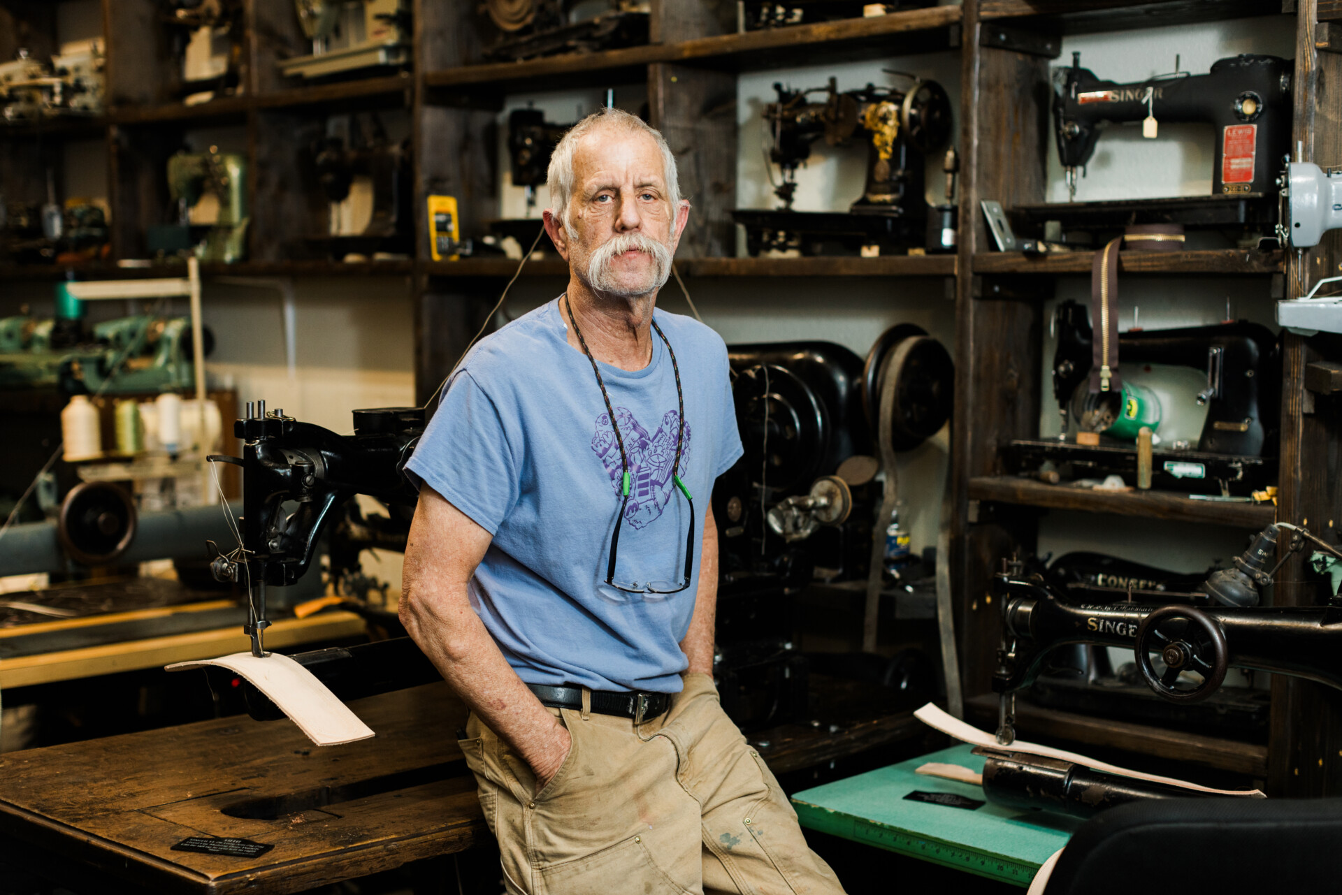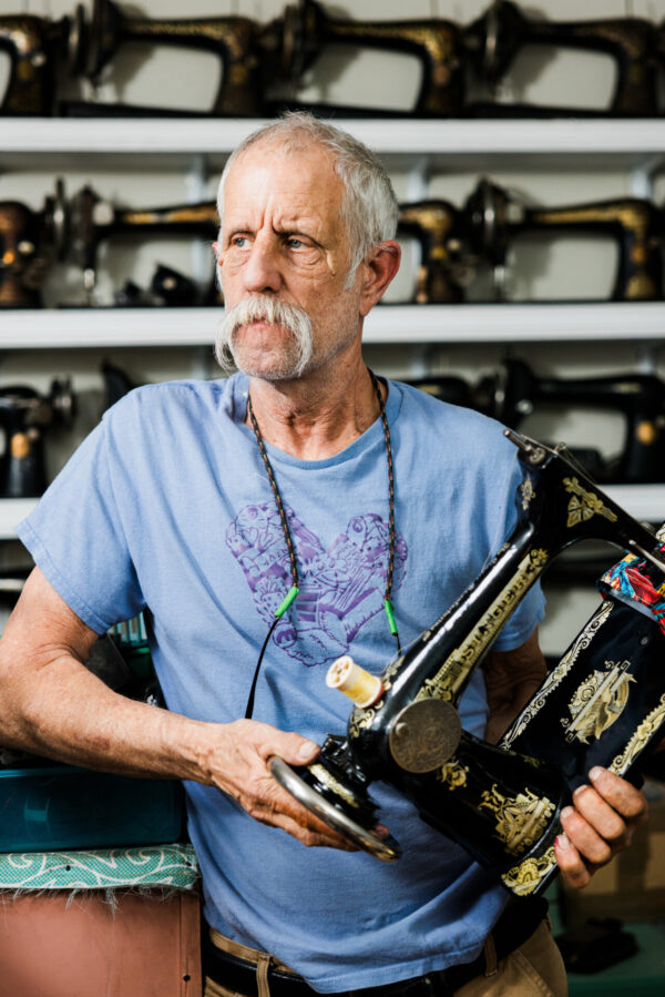 As we shared in Quiltfolk, Issue 31: Oklahoma, WK Binger is the caretaker of the Vintage Sewing Center and Museum in Tulsa, otherwise known as “The M.” He fell into this world by accident a few years back, and he now runs a beloved place where visitors can see a thousand different vintage machines. And not only can visitors see them, but they can also sit down and sew on any machine they choose. During his Quiltfolk interview, WK told us so many great stories that we decided to extend his article into a journal post and give our readers a deeper look at the man and his machines.