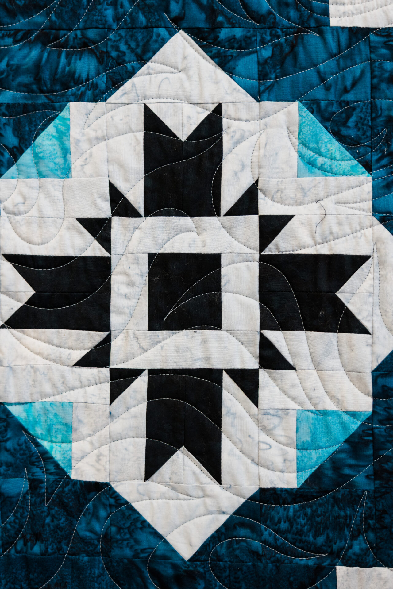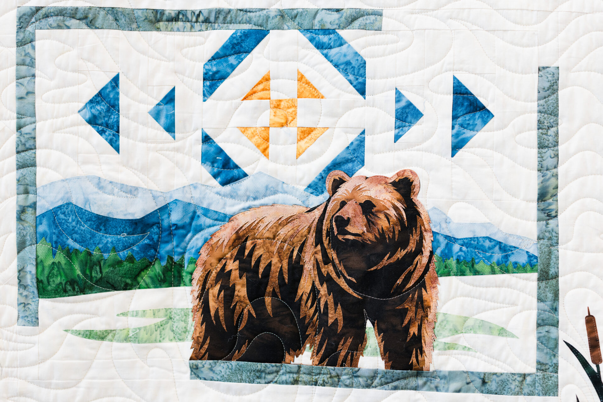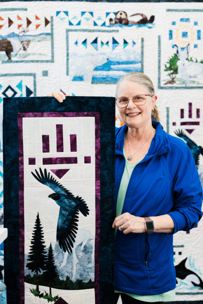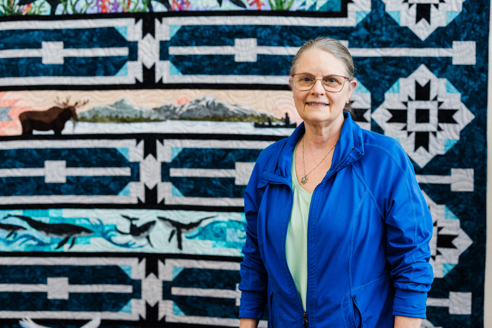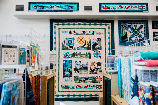Fortunately, Marie enjoys the job, even if it is on the overwhelming side. She finds it rewarding and is excited that so many people love the Hop. And, of course, it brings quilters into her own shop, Northern Threads, a 4,700-square-foot retail space in Fairbanks that she’s owned and operated now for nearly 30 years. She credits the success of her shop to the fact that she creates unique products and experiences for her customers, including original designs and Alaska-themed quilt kits. She also had already created an online shop prior to the COVID-19 pandemic, so she was more prepared than most when the quilt world went online in 2020.