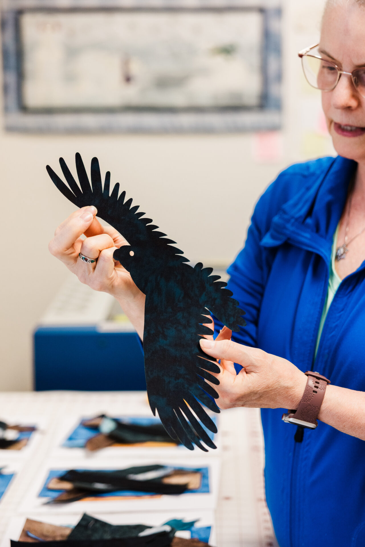 Marie was the 2025 Shop Hop’s mastermind. She designed the quilt, and then, she and her staff did all the cutting for the kits. As you might expect, it’s a lot of work. “I designed the pattern, wrote the pattern, printed the pattern, printed all the marketing materials for all the stores, and made the samples for all the stores,” Marie said. “I didn’t make a whole quilt for every store, just an individual block. And then, they put in their order, we shipped them the whole kit package together, and they sold it to the customer. So it’s a kind of marketing thing. It brings people to their store and makes the customers aware that they’re there. It helps those stores get recognized. And it helps the quilting community in general, in the state of Alaska.”