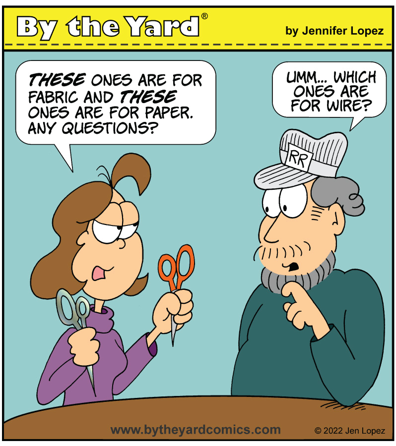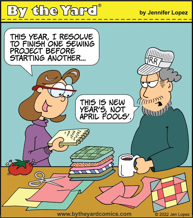 In 2019, I was introduced to Jen Lopez’s webcomic By the Yard about an obsessed quilter and her model-train-enthusiast counterpart. While I have met a lot of quilters over the past decade, Jen is the first maker I know to also write and illustrate a comic about her craft.Â