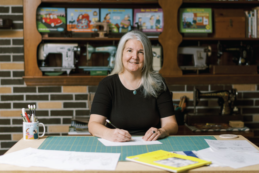 We could only include so much of Jen’s quilting and cartooning background in the magazine, but there are still so many more interesting details to share! That is why I decided to record a 45-minute interview with her that you can now watch below. And if you haven’t read her featured article in Issue 25, you can check it out here. On a personal note, I’m fascinated by humor and the creative process of writing and telling jokes. So I couldn’t wait to sit down with Jen and ask her some questions!
