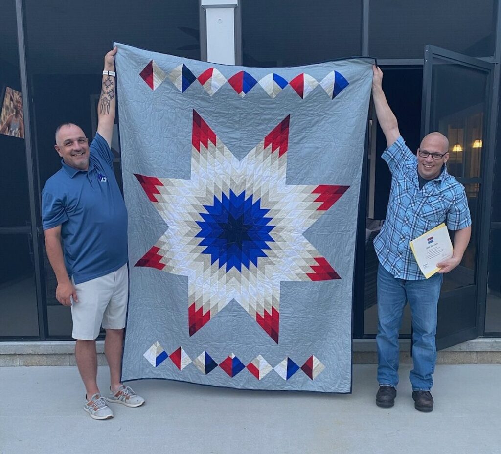 Andrew Lee, known as the Combat Quilter, found quilting as his personal comfort for PTSD. From Loudon, Tennessee, Andrew served two tours in Iraq. “I tried everything the Army offered, but none of it helped me. Then, I discovered quilting,” Andrew said. “When I’m quilting at the sewing machine, everything else goes away. It’s therapeutic.”