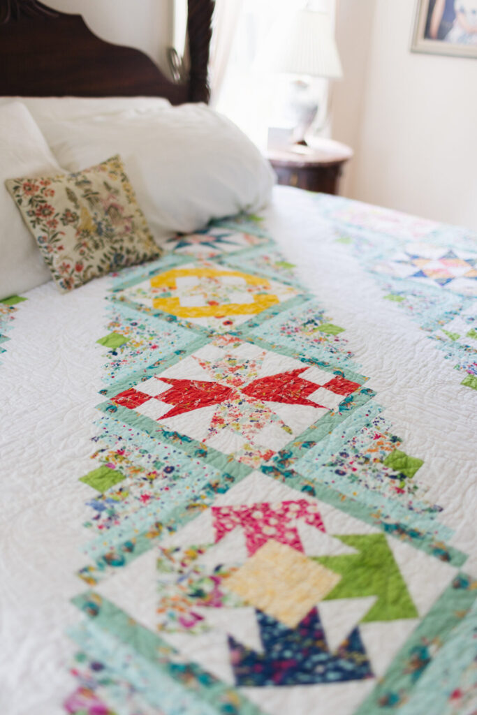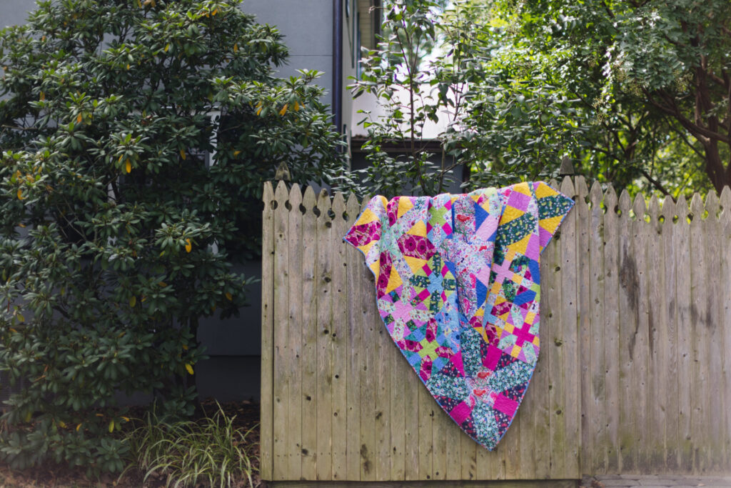 Gay credits quilt guilds as an integral part of her quilting journey. In Virginia she experienced retreats for the first time. “It was awe inspiring – picture a ballroom filled with quilters and design walls covering every vertical space available. So much fabulous inspiration,” Gay recalls, “as well as the behind-the-scenes fun with margarita parties and temporary tattoos!” This Jersey girl is not only talented but a lot of fun too.