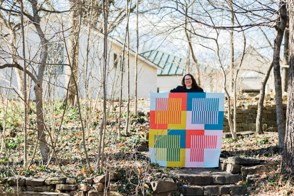 Olivia Trimble’s quilts aren’t made from fabric—they’re painted, blanketing buildings and public spaces in her native Fayetteville, as well as in other cities in Northwest Arkansas. A sign painter and muralist, Olivia, who founded Sleet City Creative, draws inspiration to paint large quilt murals from the warmth and comfort she felt as a child, wrapped in her great grandmother’s quilts. She hopes to evoke that same sense of warmth and connection for those who encounter her work.