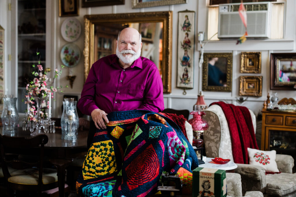 Who doesn’t appreciate a man who revels in the holidays, enjoys setting the table, and resembles jolly Santa Claus? Meet Jim Gatling of Morrilton. He is a true Renaissance man. Not only is he an accomplished artist and man of numerous talents, but he received several state-level accolades for his distinguished teaching career. In addition to quilting, his hobbies include drawing, painting, woodburning, basket and broom making, paper folding, and collecting antiques. You will be astonished by his quilts and the variety of collections he has throughout his home.