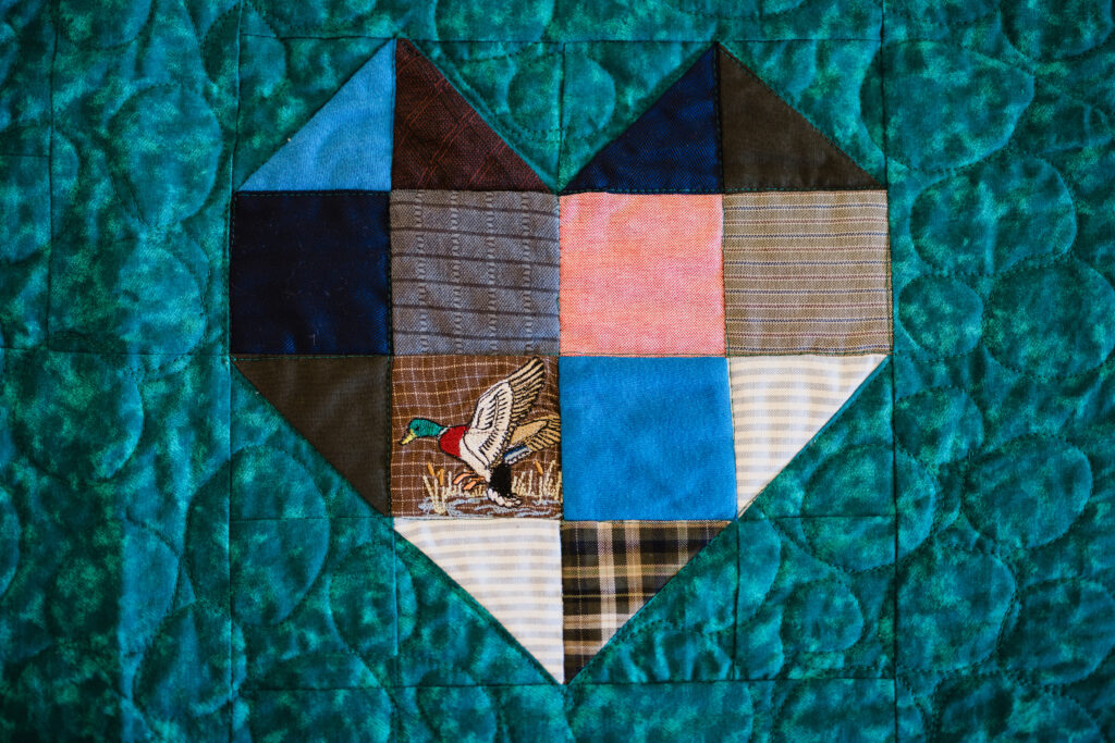 While sewing has featured prominently throughout Ellen Lewis’ life, quilting didn’t enter the picture until much later, when a phone call set her on an unexpected journey. Now, she finds meaning in making memory quilts, turning T-shirts and other clothing left behind by the departed into a tangible link for loved ones to help them heal, mourn, and remember. Every quilt she makes tells the story of that person through their clothing.