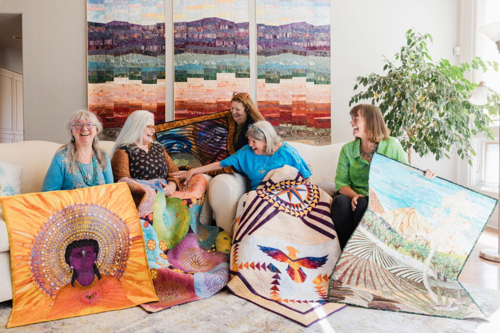 The Fab Five are Betty Busby, Nicole Dunn, Gail Garber, Michelle Jackson, and Judith Roderick. These five incredibly talented and intriguing art quilters from New Mexico are a powerhouse. One article is hardly enough space to capture their commonality and uniqueness. Find out who is the whimsical one, the fashion designer, and native to New Mexico—which ones paint on silk and which use embellishments, buttons, and “pointy dudes.” One is a longarm quilter, and one even started out as a ceramic tile designer.