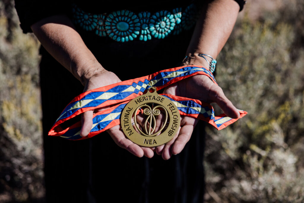 Receiving the nation’s highest award for folk and traditional arts was a bittersweet moment for Susan Hudson. On the one hand, she was honored to know that she, and her artistic output of story quilts, were being recognized in this way. But on the other hand, the award was coming from the very same government who inflicted the atrocities on the Navajo people that Susan depicts in her quilts.