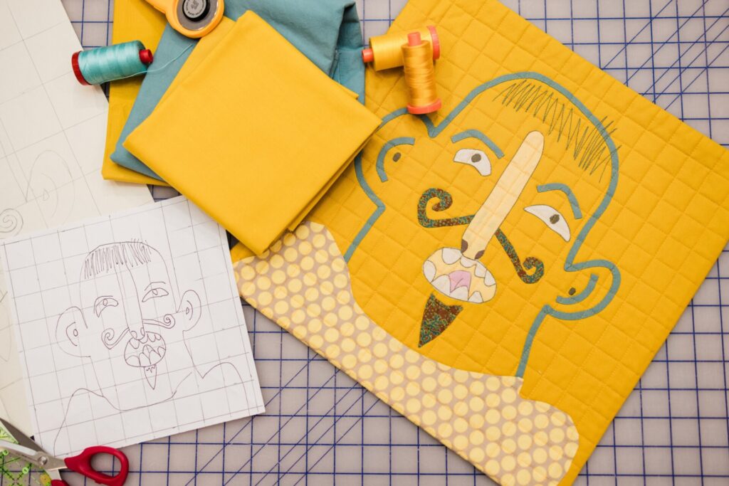 When Patti Coppock Bucklin created a darling quilt based on her young grandson’s drawing, she swept up the hearts of everyone who saw it. That quilt was titled Bob, and he has become an iconic character of the modern quilt movement. Bob was voted People’s Choice at QuiltCon 2020; there are even socks featuring the quirky guy, and quilters everywhere have followed in Patti’s footsteps, creating their own quilts based on children’s drawings.