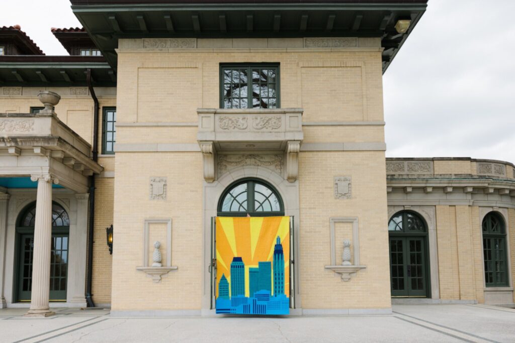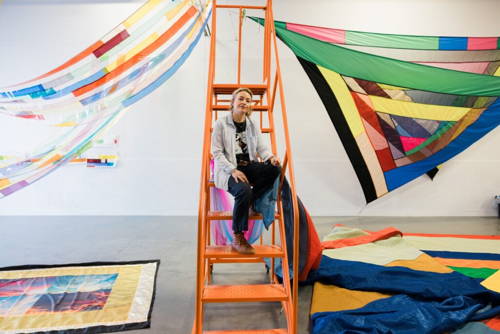 Rachel B. Hayes is a trained artist who knew she’d found her medium when she combined textiles with light and gravity. Her work has hung all over the world, and she’s collaborated with multiple types of artisans. These days, she works from a large studio in Tulsa, where she plans, plots, and creates massive pieces that evoke quilt patterns. Using all kinds of textiles like heavy duty outdoor fabrics, vinyl, and acetate, Rachel builds awe-inspiring pieces that combine with their surroundings and seem as though they were always meant to be there.