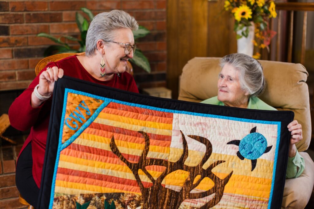 Mildred Choate Taylor has been quilting on and off for most of her 80+ years, but there is one quilt in particular that is cherished by her granddaughter, Casi Morris. It is Mildred’s timeless interpretation of the forced removal of her Cherokee ancestors to Oklahoma, the Trail of Tears.
