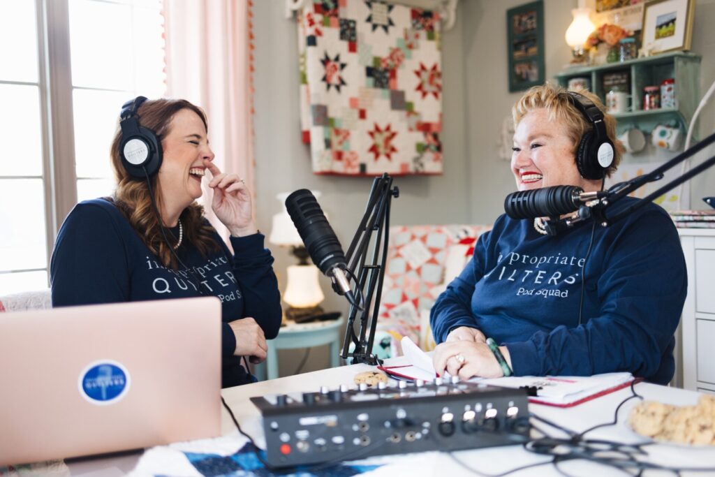 With their quilting dress code of a strand of pearls, Leslie Bercher and Rochelle Rice host the Inappropriate Quilters podcast. Rochelle said, “You don’t need to wear makeup or even have your hair done, but pearls make you feel pretty.” You won’t believe their crazy start-up story, but the success they’ve found proves they’re onto something special. Hosting the podcast brings them as much joy as they give. Leslie said, “Who gets to connect with people all over the world AND hang out with a best friend?”