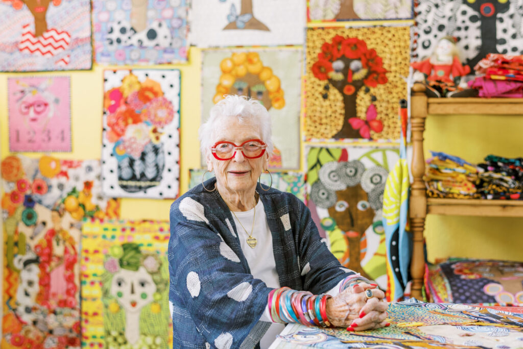 Native Californian Freddy Moran is famous for her love of color and having fun wherever she goes. She began making quilts in her early 60s and, from the very beginning, insisted on doing things her own way. Always a liberated quilter, her many years of collaborating with Gwen Marston honed her approach to making colorful creations and sharing her process in books and classes. At 92, Freddy continues to bring her love of color—and life—wherever she goes.