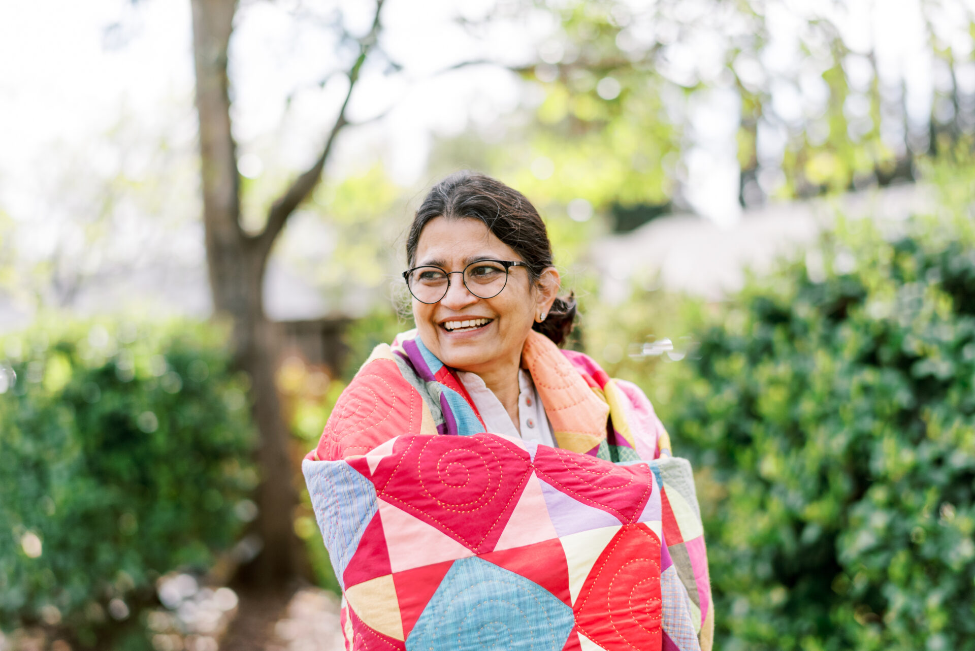 Sujata Shah stitches her life’s stories into every quilt she makes, creating unique pieces that capture each moment in time. Heavily inspired by the quilters of Gee’s Bend and the unique quilting styles across India, her work is part function, part art, and part journal.