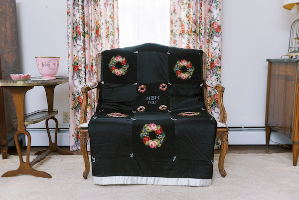 An Art Deco quilt stands out among the centuries of art and antiques inside one of Newport’s most interesting homes. It is thoroughly modern and all black, and this chic style is a perfect fit for its historical owner—a modern woman grounded in tradition.