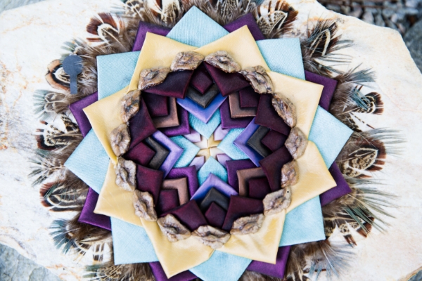James Malcolm grew up in a large family near the headquarters of the Lumbee tribe in North Carolina, where he learned many Native crafts. After living and working away from family and tribe, he came back home to study art and discovered a new trend in Lumbee regalia featuring pinecone-shaped patchwork on the women’s costumes. Now he’s become known for the stunning patchwork he makes, both for regalia and as collective craft pieces.