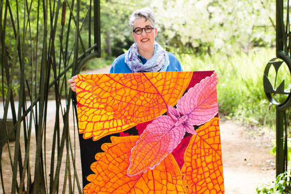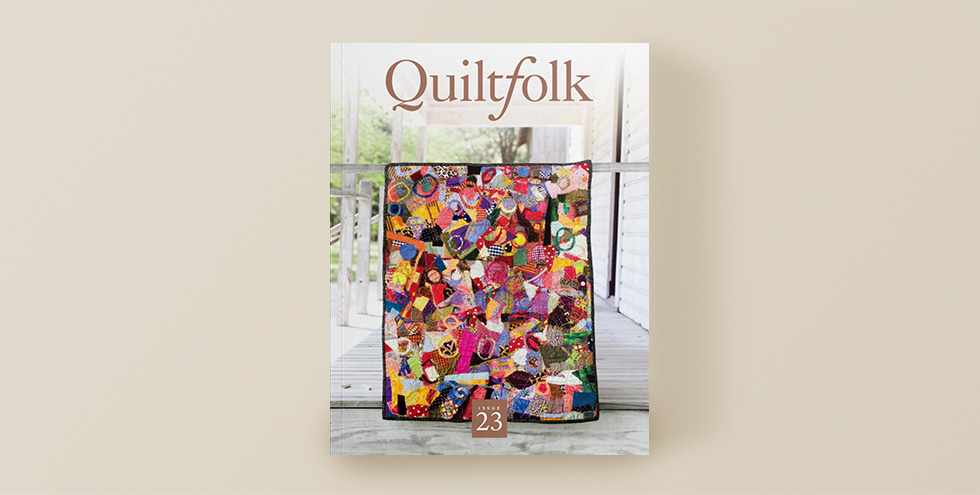 For the first time ever, a profile subject had a solo show that coincided with the Quiltfolk team’s trip to her state. And it gets better: Susan Brubaker Knapp’s show at a botanical garden featured quilts about native plants of North Carolina, so photographer Azuree Wiitala could photograph a quilted depiction of a plant, like a Venus Fly Trap, then step outside to shoot the actual growing flora. Fans of the PBS show Quilting Arts TV know Susan as a wise and generous host spotlighting other creators. In this issue, she gets her own much-deserved spotlight.
