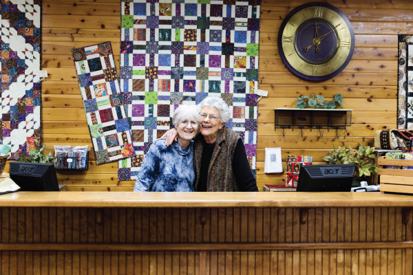 Kathy Thompson and Julie Milam have been laughing their way through a successful four decades at the fabric and quilting store Creations in Kerrville, TX. They attribute their longevity to their humor and their beautifully balanced skill sets.