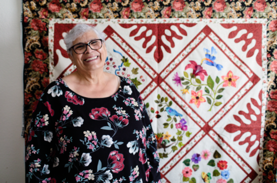 When you see a quilt by Rosillis “Rosie” Rosario, you know it. This relatively new but exceptionally gifted quiltmaker makes a kind of garden out of every quilt she creates, incorporating roses and other flowers into the borders and the blocks. In this feature, Rosie and husband Angel share with us the story of their lives and Rosie’s success in the world of competition quilts, and in doing so, give us a meaningful portrait of the people of Las Vegas.