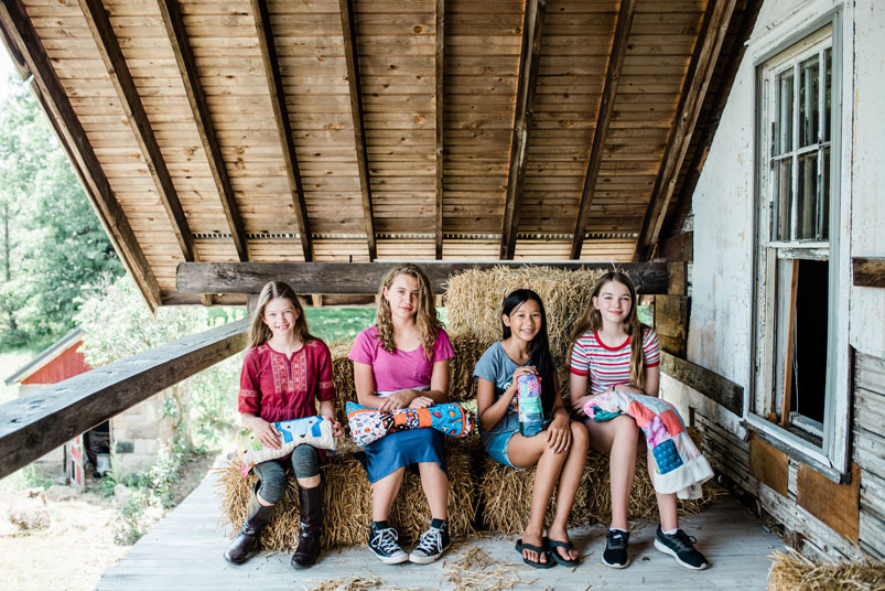 Feeling gloomy about the lack of young people interested in quilting? Prepare to be cheered way, way up. Modern quilt favorite Lynn Carson Harris is teaching the next generation. We met four of the young ladies under her tutelage and gave them their star turn, out at Carson Harris’s farm in Mid Michigan.