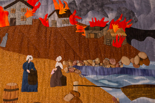 The crown jewel of St. Martinville for quilt enthusiasts is located in the Museum of the Acadian Memorial. The expertly stitched Acadian Odyssey – Acadie to Nouvelle Acadie retells the Acadians’ journey south to Louisiana after being violently removed from their Canadian homes by the British over four centuries ago.