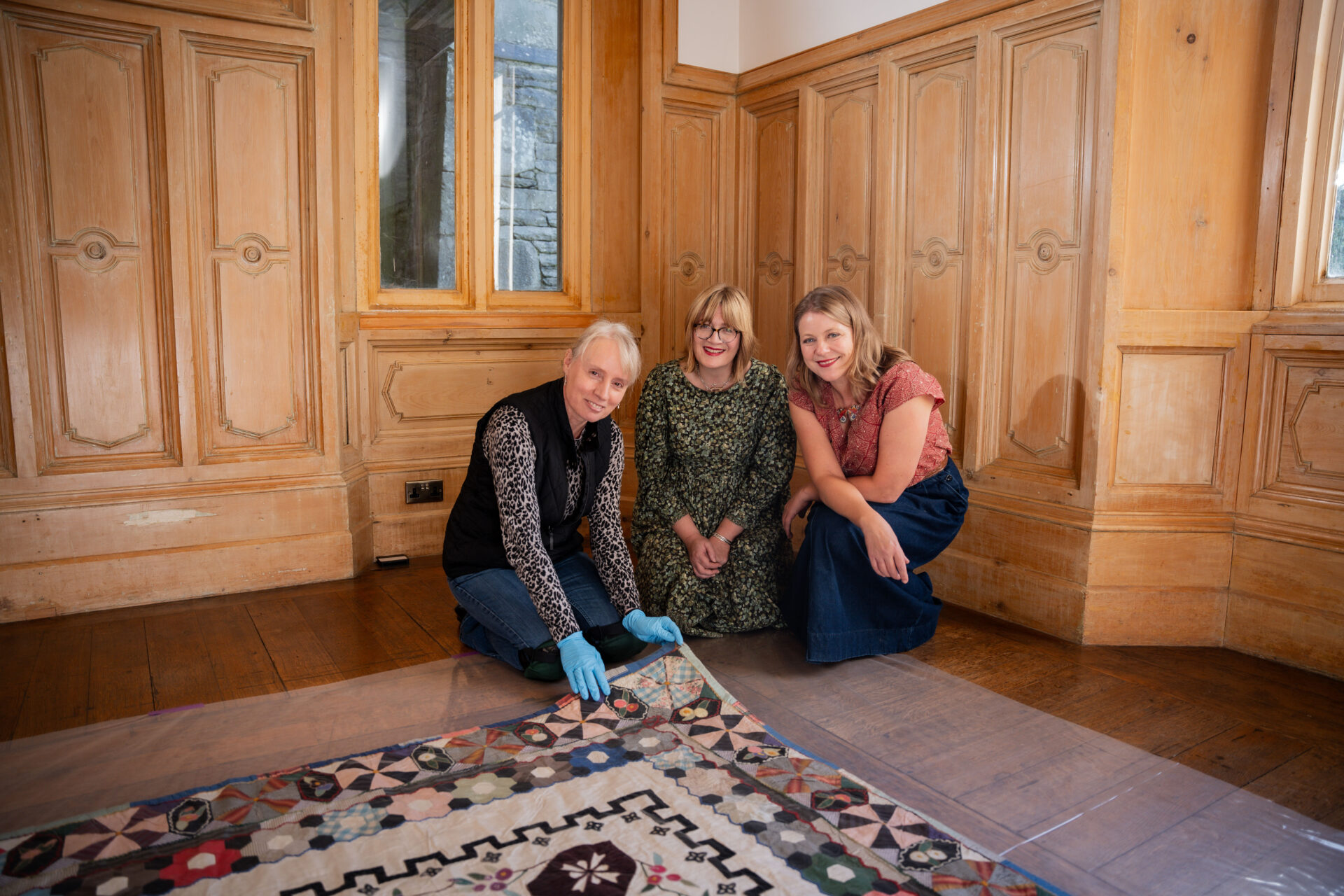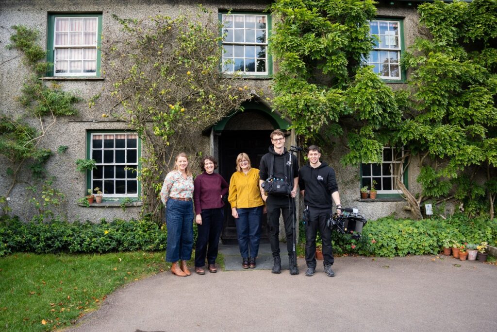 Although the 1863 Potter Wedding Quilt, made for the wedding of Beatrix’s parents: Helen and Rupert Potter, has rarely been on public display, our team was able to gain private access to film the quilt in all of its glorious detail at Wray Castle with National Trust Conservator Michelle Harper as their expert guide.