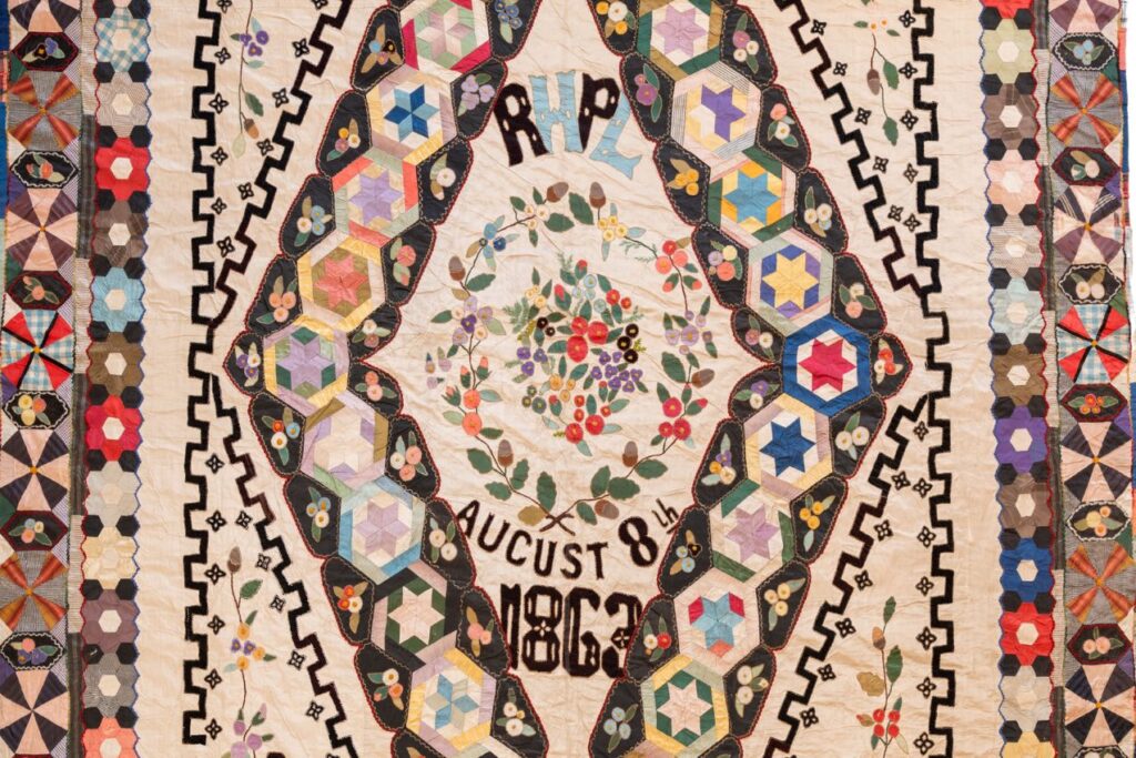 There is no such thing as too many quilts. That is why Jenni and Kay are prepared to introduce you to some additional treasures from the region that were made around the same time period as the Potter Wedding Quilt and are currently in possession of the Quilters’ Guild of the British Isles, including more wedding quilts!